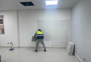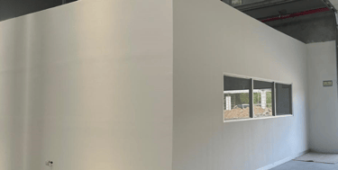Construye paredes livianas utilizando materiales y técnicas innovadoras para crear particiones o divisiones dentro de un edificio.